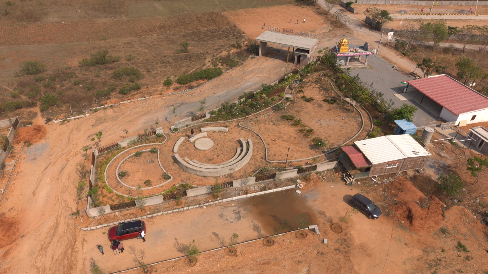 The development includes a grand entrance arch, 40 ft and 30 ft BT roads, a compound wall surrounding the entire venture, and well-laid underground drainage, electricity, and water pipeline systems. Residents can enjoy a thoughtfully designed central park with a children’s play area, landscaped footpaths with avenue plantation, overhead water tank, septic facilities, and 24×7 security. The layout is also 100% vastu compliant, enhancing its appeal for homebuyers.